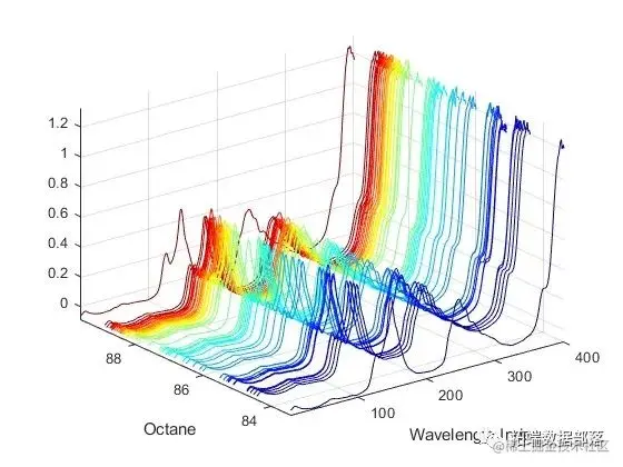 加载包括401个波长的60个汽油样品的光谱强度及其辛烷值的数据集。