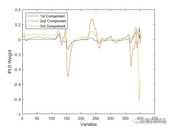PLS权重是定义PLS分量的原始变量的线性组合,即,它们描述了PLSR中的每个分量依赖于原始变量的权重。