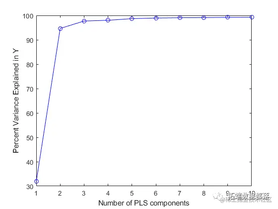 为了充分拟合数据,可能需要十个成分,但可以使用此拟合的诊断来选择具有更少成分的更简单模型。例如,选择成分数量的一种快速方法是将因变量中解释的方差百分比绘制为成分数量的函数。