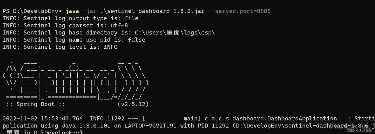 java -jar .\sentinel-dashboard-1.8.6.jar --server.port=8888