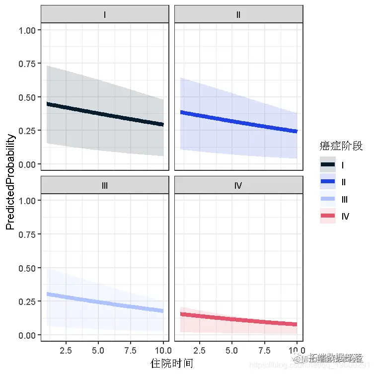 geom_ribbon(aes(ymin = Lower, ymax = Upper, fill = 癌症阶段), alpha = .15) +