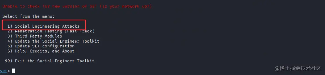 - Update the Social-Engineer Toolkit:更新软件