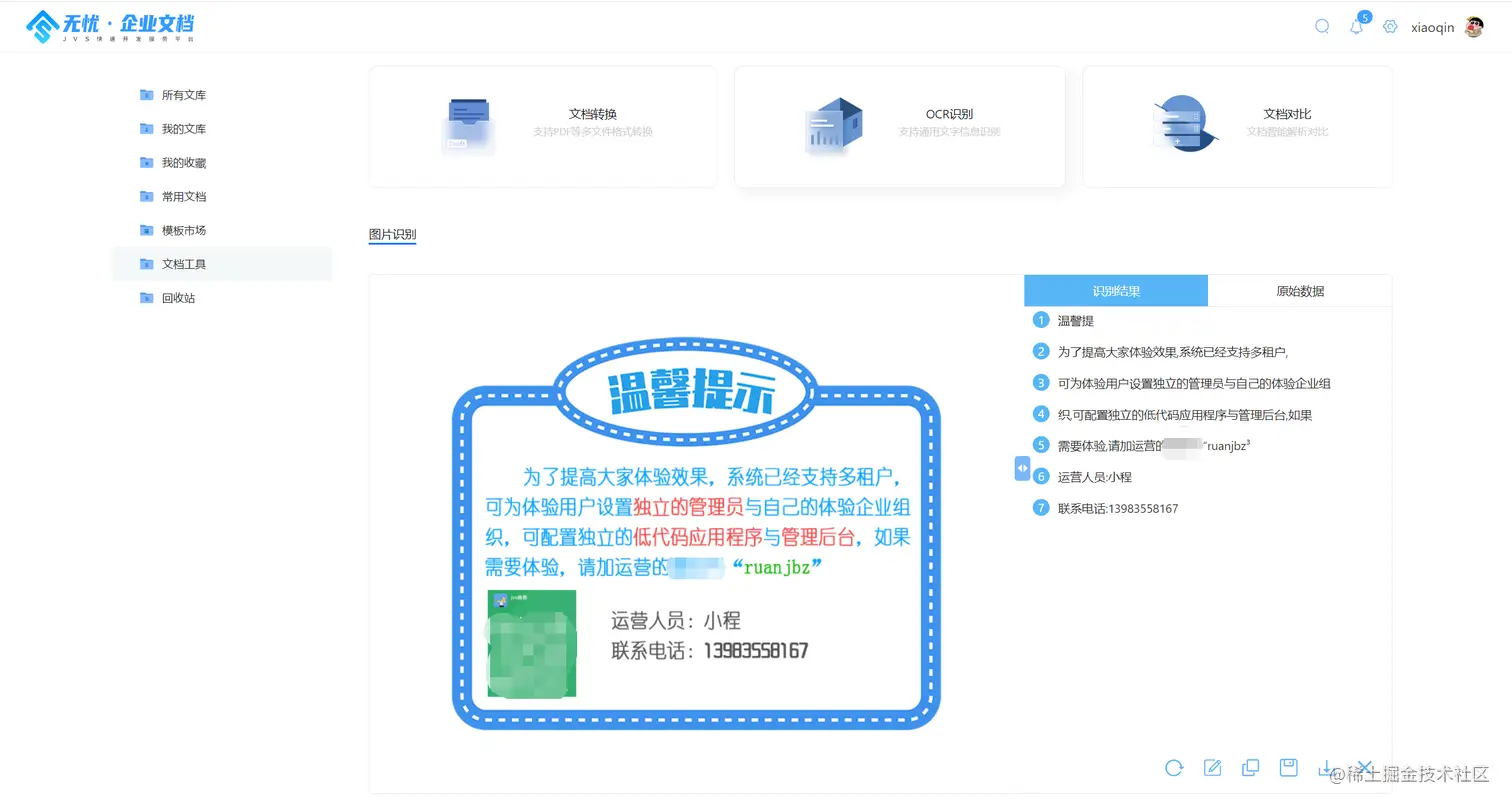 - 增加文档工具,提供图片的在线OCR识别