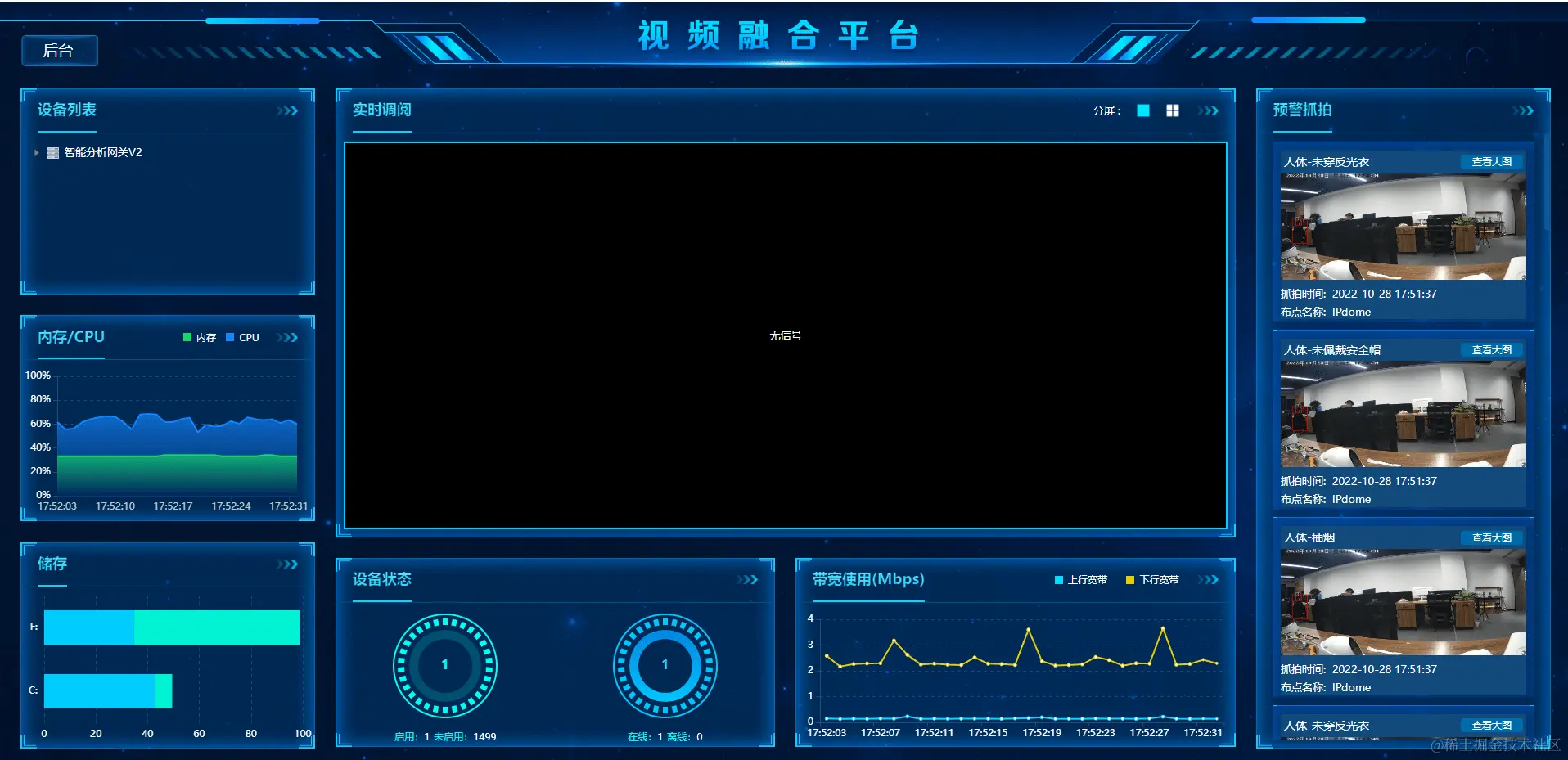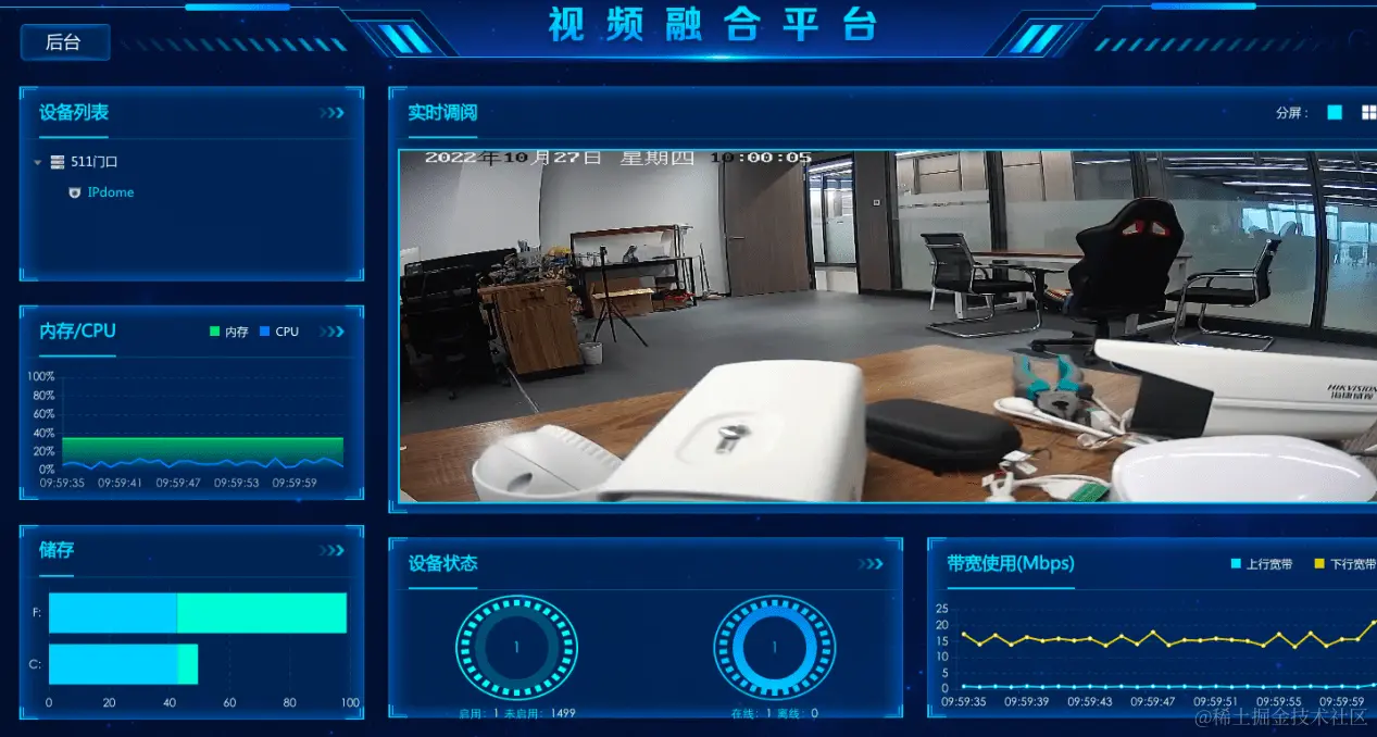 通过新增自适应获取浏览器分辨率,自动调整模块的宽度,达到用户可以完整观看到整个页面。(不建议调整太低分辨率,在使用场景中,可视化大屏主要是可以让用户清晰地看到视频监控的实时画面情况,太低的分辨率会影响视觉效果)