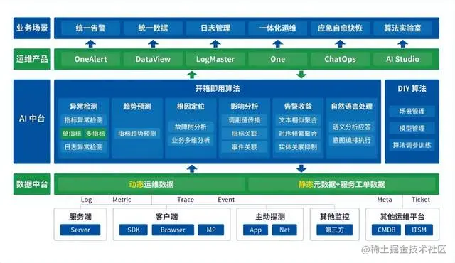 博睿数据算法中台Swift AI赋予了博睿数据全产品智能化的体验升级,可帮助客户实现开箱即用的AIOps能力。客户无需投入较大的人力成本和时间成本在收集数据、准备数据、清洗数据上,博睿数据的智能探针(SmartAgent)能力会对metric、trace、log、event相关数据进行智能化采集,并自动构建数据之间的关联关系,自动还原物理世界中IT系统架构。基于高质量可观测数据和强大的算法能力,实现开箱即用的AI体验。
