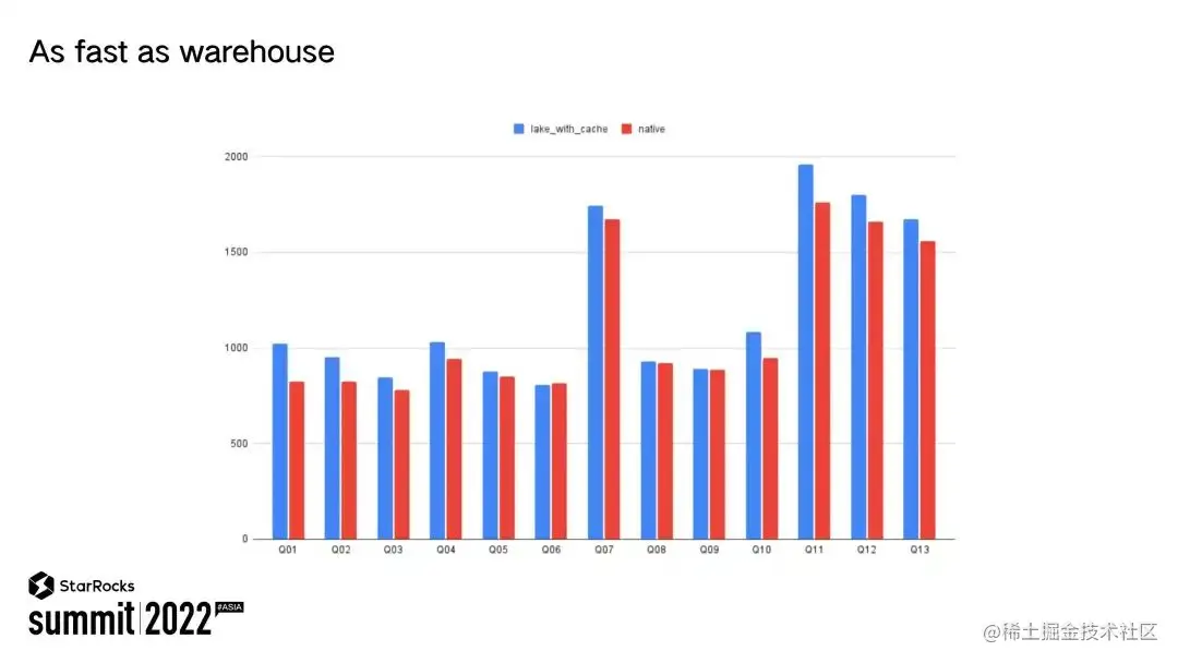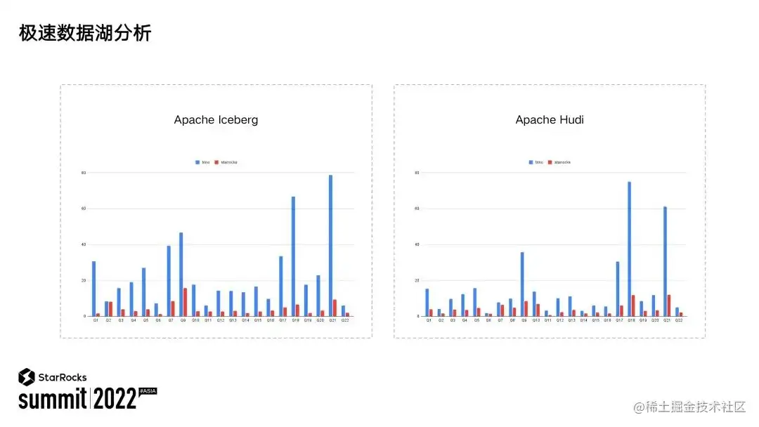 提到数据湖分析,用户总是觉得数据湖分析的性能会不如 OLAP 快。我们把 StarRocks 数据湖分析叫做极速数据湖分析。那到底有多极速呢?我们认为为用户提供跟仓一样性能的数据湖分析,就是极速数据湖分析。