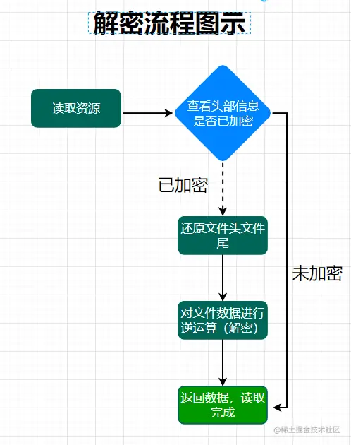 解密过程基本与加密过程对称,关键点在于定位程序读取文件数据的代码位置,改造代码,将数据还原为加密前的状态。 同时支持保留未加密资源的加载,不影响未加密资源的加载。