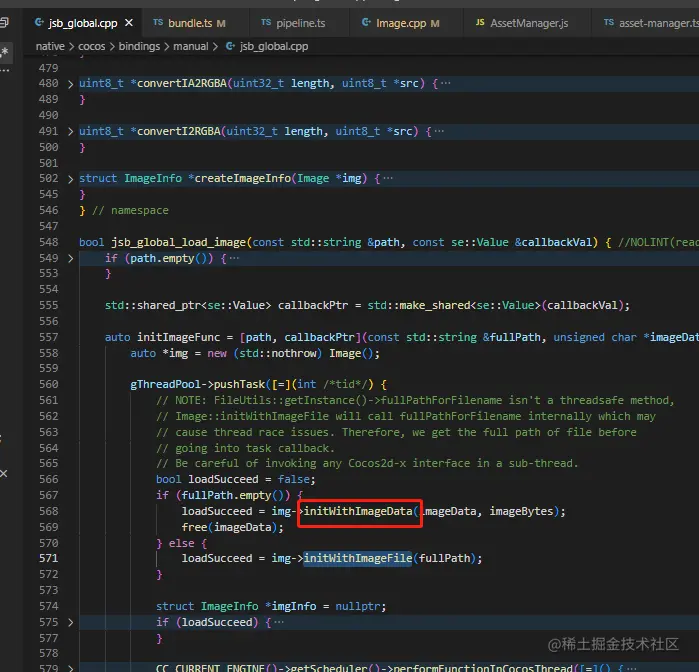 通过对引擎代码的跟踪,我们发现所有的资源加载操作,都将进入管线,由管线完成加载的流程。