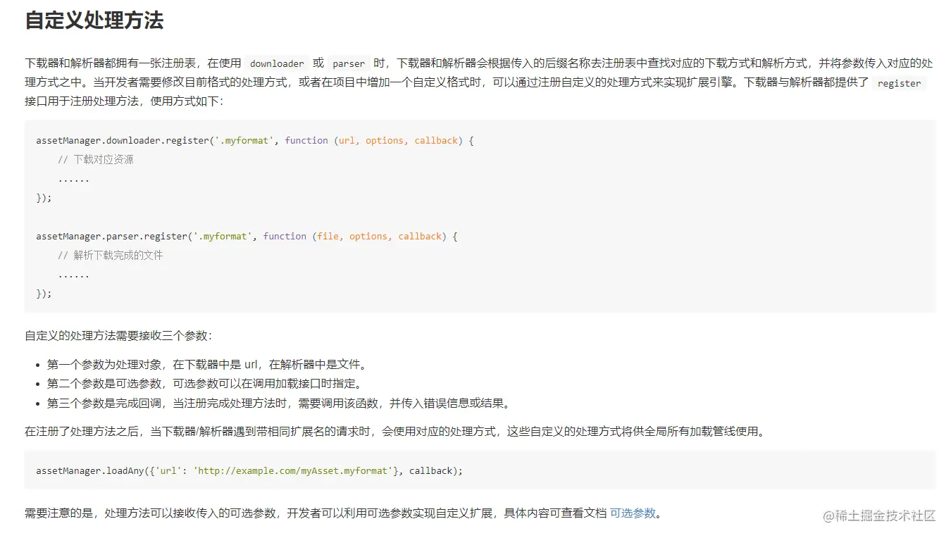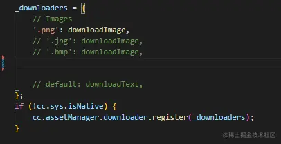 导入插件代码后,在代码文件中,参照文档进行下载器的注册,这里的代码与引擎代码基本一致,只是将下载图片的代码进行了改造。对于图片资源,通过arraybuffer下载后,转换为base64进行显示。