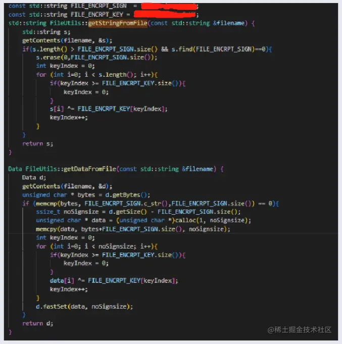 跟踪代码可发现,在原生端,资源的加载基本都会经过getStringFromFile()与getDataFromFile()方法,因此在这两个方法中进行解密,可以满足大多数的资源解密需求,在C++中进行处理,效率也将更高,对加载的影响也可以降低一些。