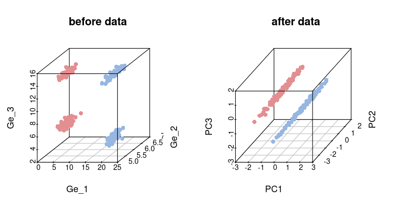 得到prcomp方式的基因表达矩阵,此时存在三个主成分(PC1、2、3)。
