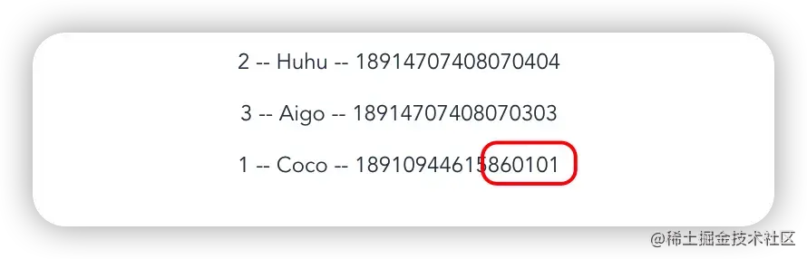 昨天早上接到一个生产线上的Bug,简单看了一下,精度丢失,原本应该显示 18910944615860101 的数值,却丢失了最后一个数字1展示成了 18910944615860100 ,有经验的小伙伴看到这里,一眼知道这是精度丢失。