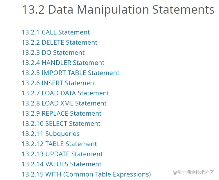 类似于增删改查的语句我们在第一节已经学习,本小节主要讲解 CALL、DO、HANDLER、IMPORT TABLE、LOAD DATA、LOAD XML、REPL ACE、Subqueries、TABLE、VALUES、WITH,这11个语句的使用,后续会详细的进行详细分析,关注本专栏。