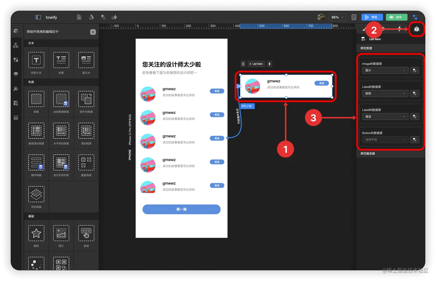 4.2. 点击 检查面板 中的 数据绑定与设置