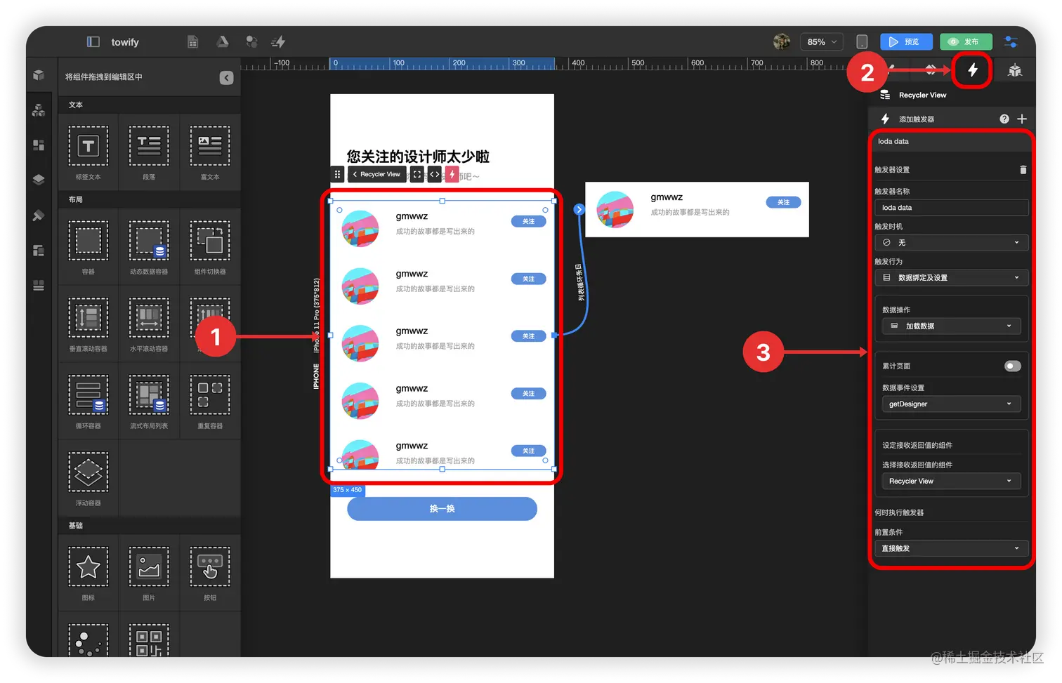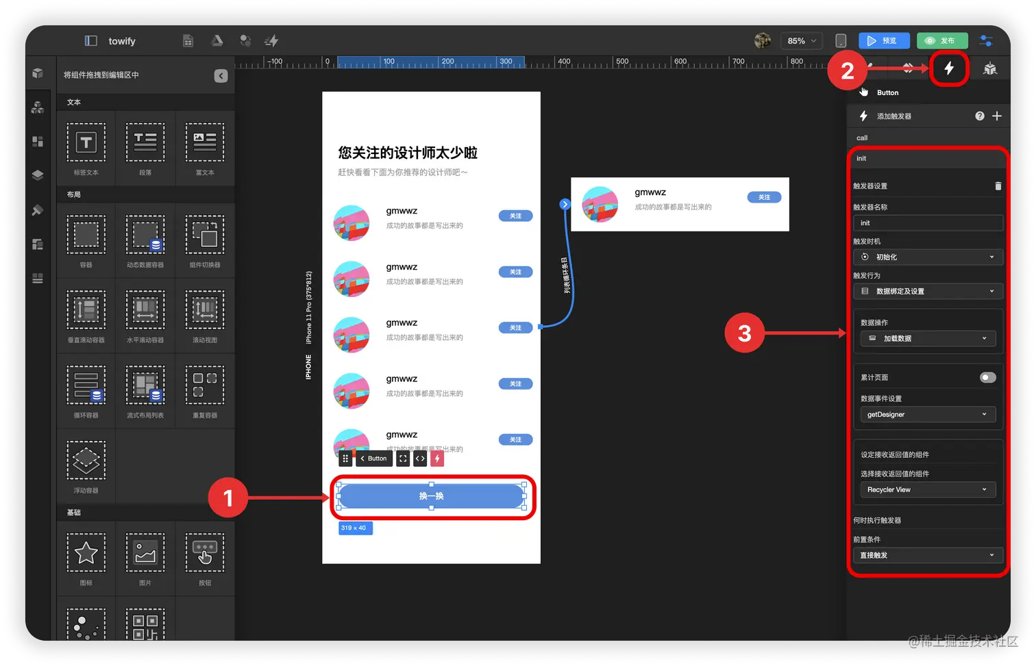 1.已制作的换一换关注列表