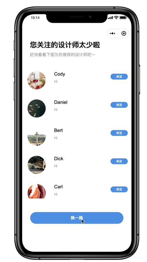 这样就可以在小程序里实现一个随机关注列表了。