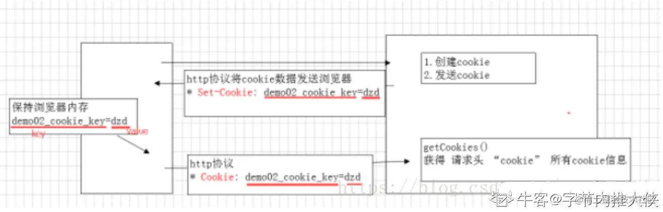 - servlet创建cookie,保存少量数据,发送给浏览器。