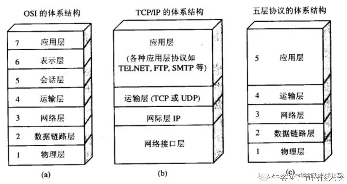 计算机网络体系大致分为三种,OSI七层模型、TCP/IP四层模型和五层模型。一般面试的时候考察比较多的是五层模型。