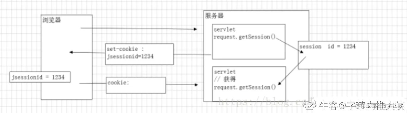 session原理:首先浏览器请求服务器访问web站点时,服务器首先会检查这个客户端请求是否已经包含了一个session标识、称为SESSIONID,如果已经包含了一个sessionid则说明以前已经为此客户端创建过session,服务器就按照sessionid把这个session检索出来使用,如果客户端请求不包含session id,则服务器为此客户端创建一个session,并且生成一个与此session相关联的独一无二的sessionid存放到cookie中,这个sessionid将在本次响应中返回到客户端保存,这样在交互的过程中,浏览器端每次请求时,都会带着这个sessionid,服务器根据这个sessionid就可以找得到对应的session。以此来达到共享数据的目的。 这里需要注意的是,session不会随着浏览器的关闭而死亡,而是等待超时时间。