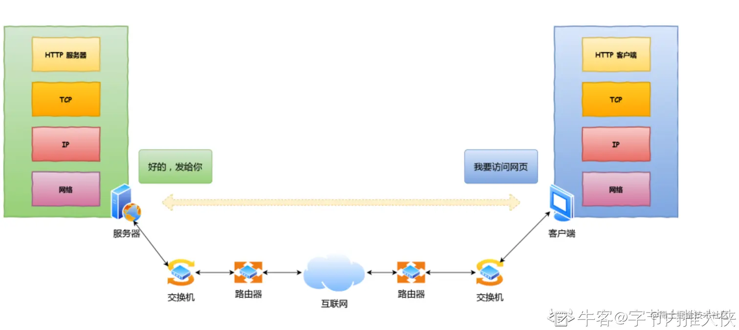 应用层:为应用程序提供交互服务。在互联网中的应用层协议很多,如域名系统DNS、HTTP协议、SMTP协议等。
