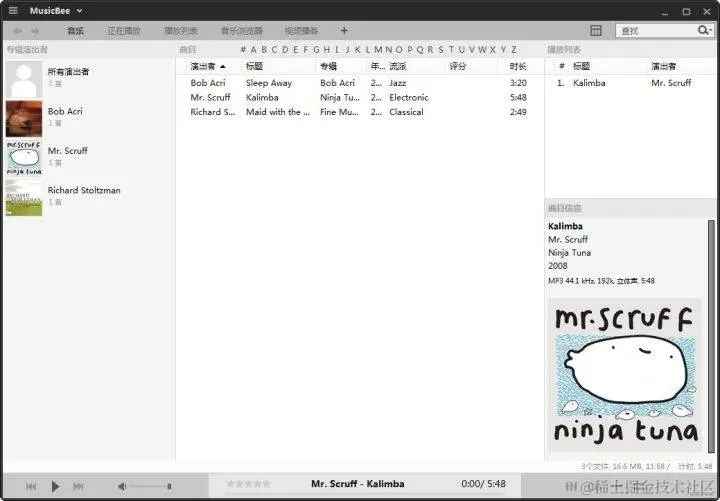 这是一个免费的音乐管理器,可搜索本地硬盘、移动设备和互联网上的音乐文件,自动分类,我辛辛苦苦下载的周杰伦歌曲资源,总算在电脑上也能播放了。MusicBee 完全免费,可以帮我们创建多个音乐库,并且支持在多个音乐库间切换,支持 Boardcast 广播、视频播放、支持CD烧录、可由插件拓展更多功能。另外还可以快速搜索音乐等。