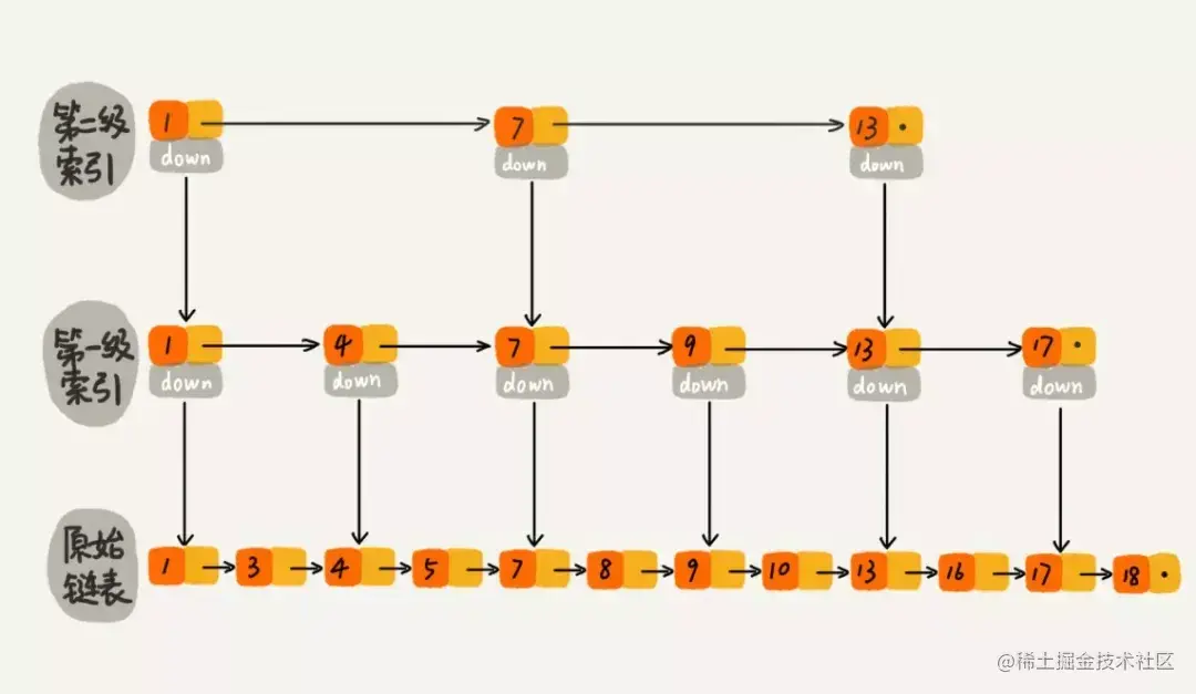 这种数据结构称为跳表(Skip List)。这样做查找速度更快了,但同时也会耗费更多的存储空间,它的思想其实就是空间换时间。