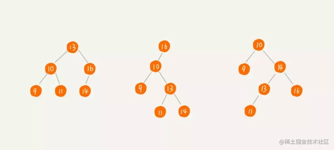 PS: 平衡二叉树发明的初衷是为了解决普通二叉查找树在极端情况下退化成链表,插入、删除等操作复杂度增加的问题。而“平衡”的意思就是让整棵树的左右子树比较均衡,从而使整棵树的高度相对低一些,插入、删除等操作效率更高。因此,尽管有些二叉树没有严格符合平衡二叉查找树的定义,但只要树的高度没有比 logn 大很多,仍然可以认为它是一棵平衡二叉树。
