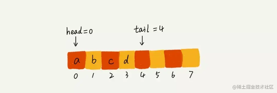 队列可以用数组或链表来实现:数组实现的队列称为「顺序队列」