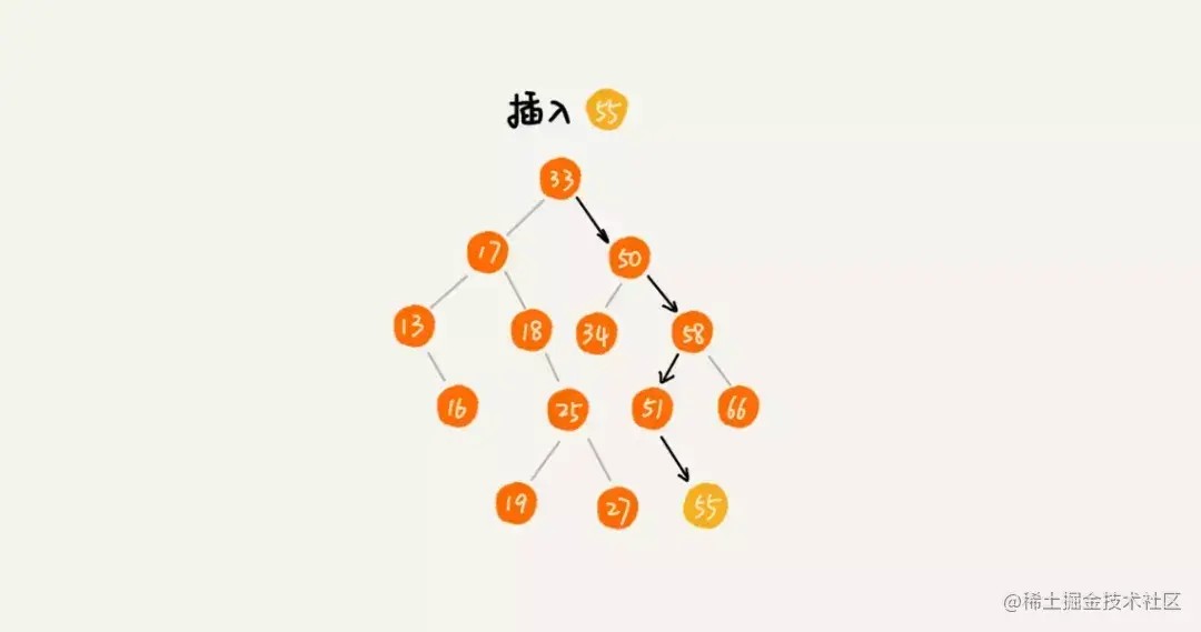 插入过程与查找的比较过程有些类似,操作示意图如下: