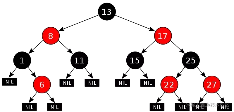 PS: 上面说的“叶节点”或“NIL节点”,不包含数据而只是充当树在此结束的指示,绘图中通常被省略。