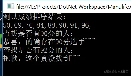 Console.WriteLine("恭喜,的确存在90分选手~~~");