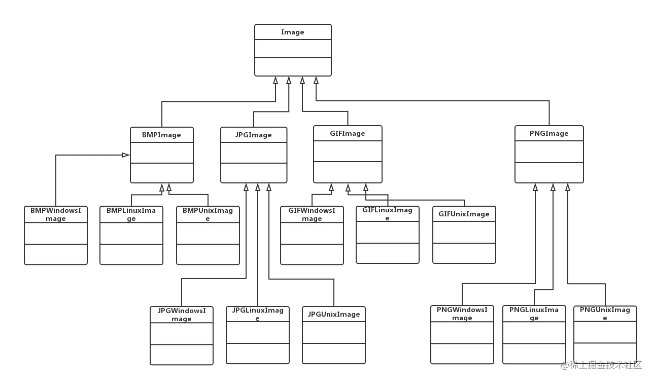 通过分析可以知道,这个系统存在两个独立变化的维度:图像文件格式和操作系统,如下图所示: