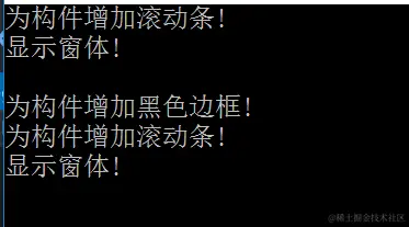 可以看到,第一次装饰之后,窗体有了滚动条。第二次装饰之后,窗体不仅有了滚动条,还增加了黑色边框。