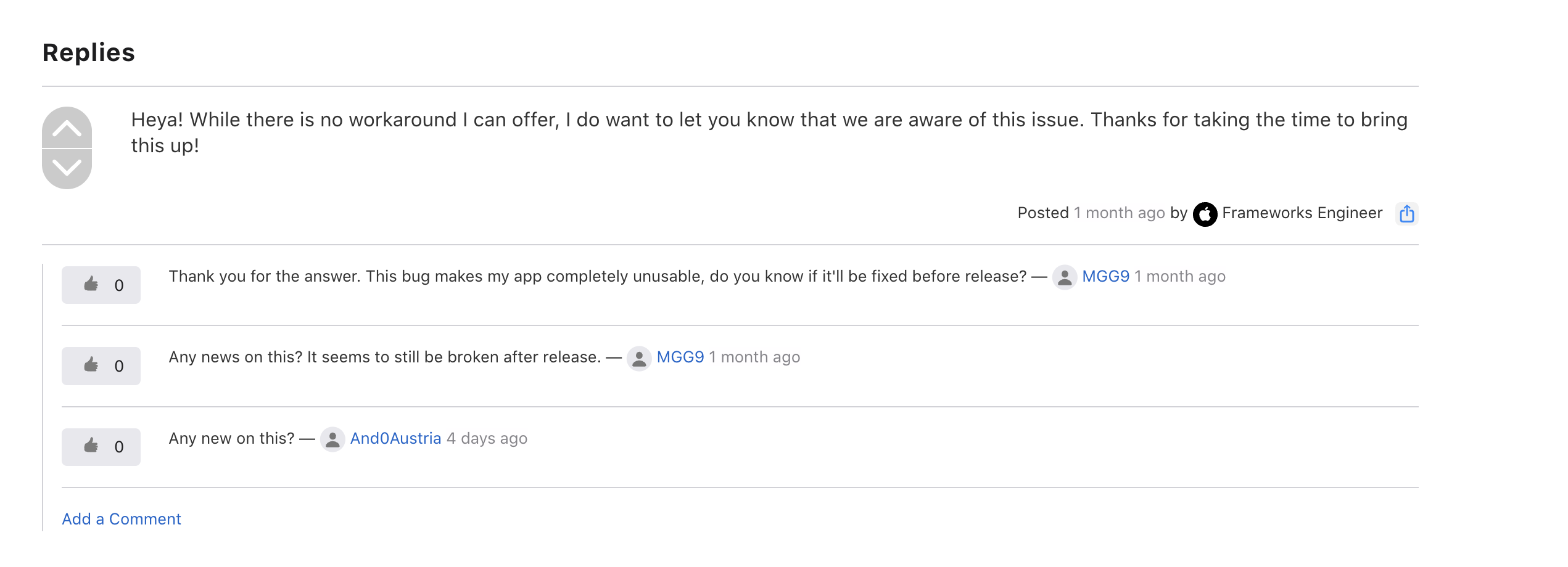 官方并没有一个明确的解决方案,只表示记录了该问题。
