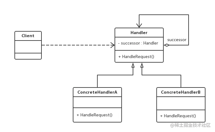 职责链模式结构的核心就在于引入了一个抽象处理者,其结构如下图所示: