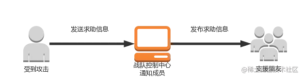 联盟成员收到攻击 => 发送通知给盟友 => 盟友作出响应