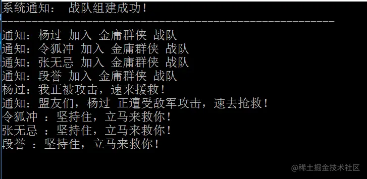 M公司开发人员通过分析,发现在该系统中战队成员之间的联动过程可以简单描述如下: