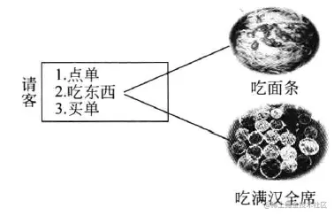 在现实生活中,很多事情都需要经过几个步骤才能完成,例如请客吃饭,无论吃什么,一般都包含:点单、吃东西、买单等几个步骤,通常情况下这几个步骤的次序是:点单=>吃东西=>买单。在这3个步骤中,点单和买单大同小异,最大的区别在于第2步-吃什么?吃面条和吃满汉全席可大不相同。