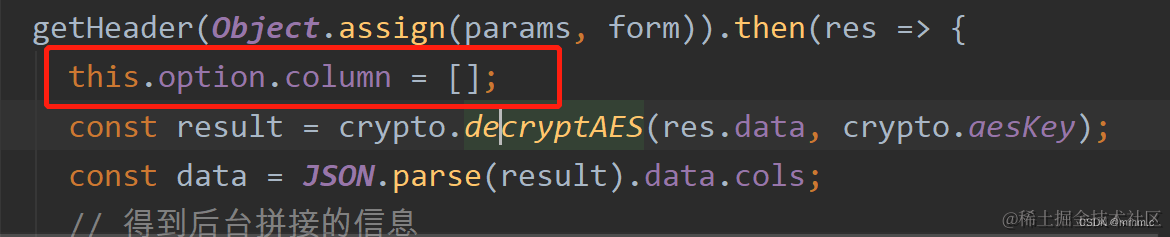 这让我很苦恼, 虽然我直接就看出来这是this.option.column.push所导致的,我应该每次push之前都清空下column,再push新的内容,就像Java中循环list时若想每次只拿到想要的结果,就要new一个对象来当盘子,那么在这avue中,什么方式能实现呢,离谱的是this.option.column有push,但是没发现有关于delete或者remove的方法,也可能是我前端菜鸡不知道,反正因为研究删除函数浪费了很久,最后我抱着试试看的想法,既然column是定义在option中的一个数组,那么直接每次获取表头前,我将this.option.column整个赋空,然后操作不就行了。