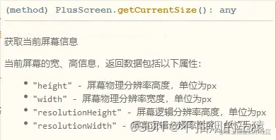方法:调用getCurrentSize方法 (可以获取到屏幕逻辑分辨率)(在方法中使用uni强制横屏方法 plus.screen.lockOrientation('landscape-primary'); )