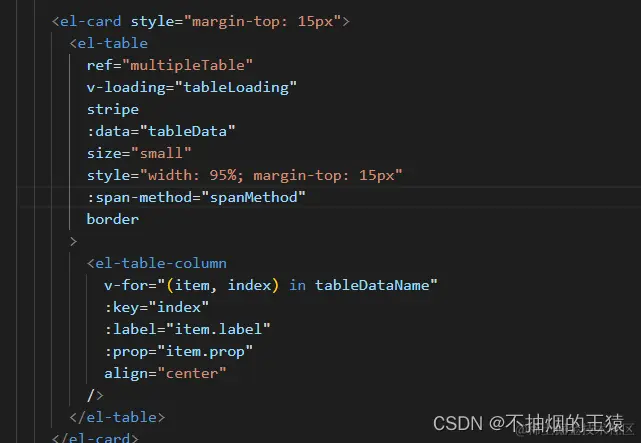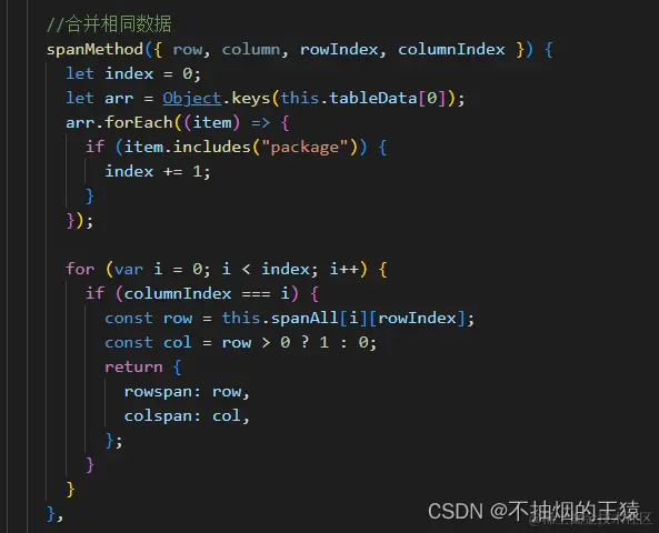 Element实现表格相同数据的列合并 汪汪队出击 2022-11-03 111 阅读1分钟 本文已参与「新人创作礼」活动,- 起开启掘金创作之路。 使用table自带的合并方法 span-method 判断下一行数据和上一行数据是否相等(修改:需要在let index = 0 下面清空spanAll) 合并数据