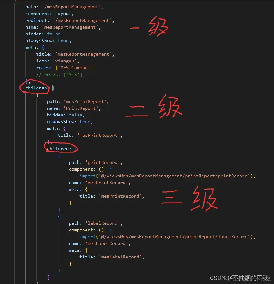 Vue中配置二级路由 汪汪队出击 2022-11-03 76 阅读1分钟 本文已参与「新人创作礼」活动,- 起开启掘金创作之路。 一.首先在需要创建二级路由下的地方新增文件夹 二.在router下的index.js文件中添加路由规则,二级和三级路由中path路径直接写文件名即可