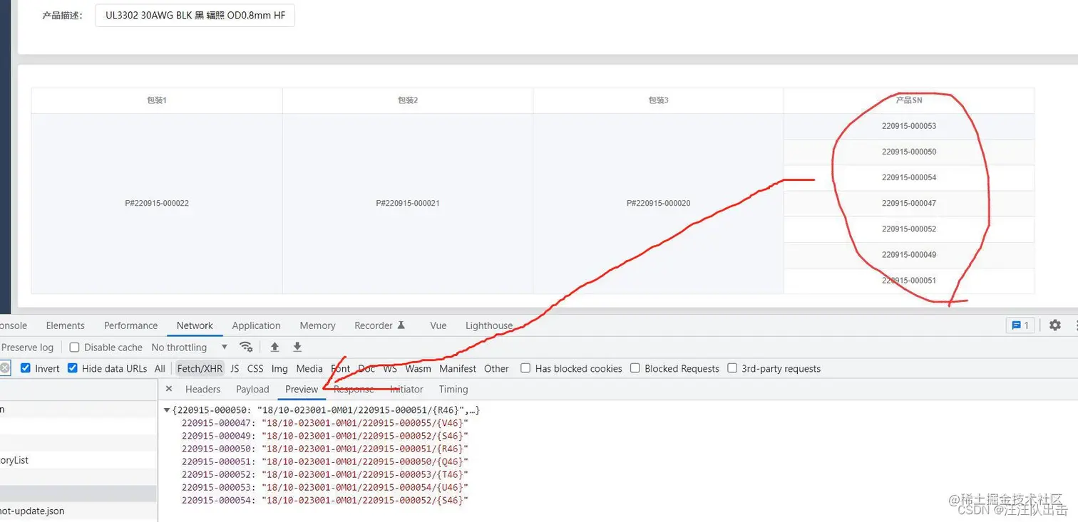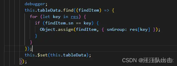 Vue 判断数组对象中是否含有对象中的值,包含则将值插入到数组对象相应的位置 汪汪队出击 2022-11-03 120 阅读1分钟 本文已参与「新人创作礼」活动,- 起开启掘金创作之路。 需求: 判断箭头所指的数据(这是一个对象)是否和产品SN中的数据对应,并在表格后新增一列数据 方法一: forEach遍历数组对象,然后使用对象的 for in 方法拿到键值,然后使用Object.assign为数组对象的每一个添加数据,然后使用 $set ,防止表格数据不刷新。(推荐使用第二种) 方法二: 使用find方法 查找第一个即可(不用每个都遍历) 最终效果: