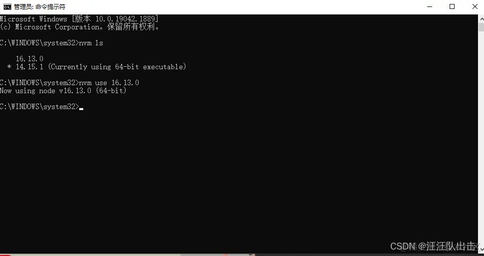 最后使用nvm use xxxx 切换到你需要的版本(切换有乱码就用管理员打开cmd再切换一次即可)
