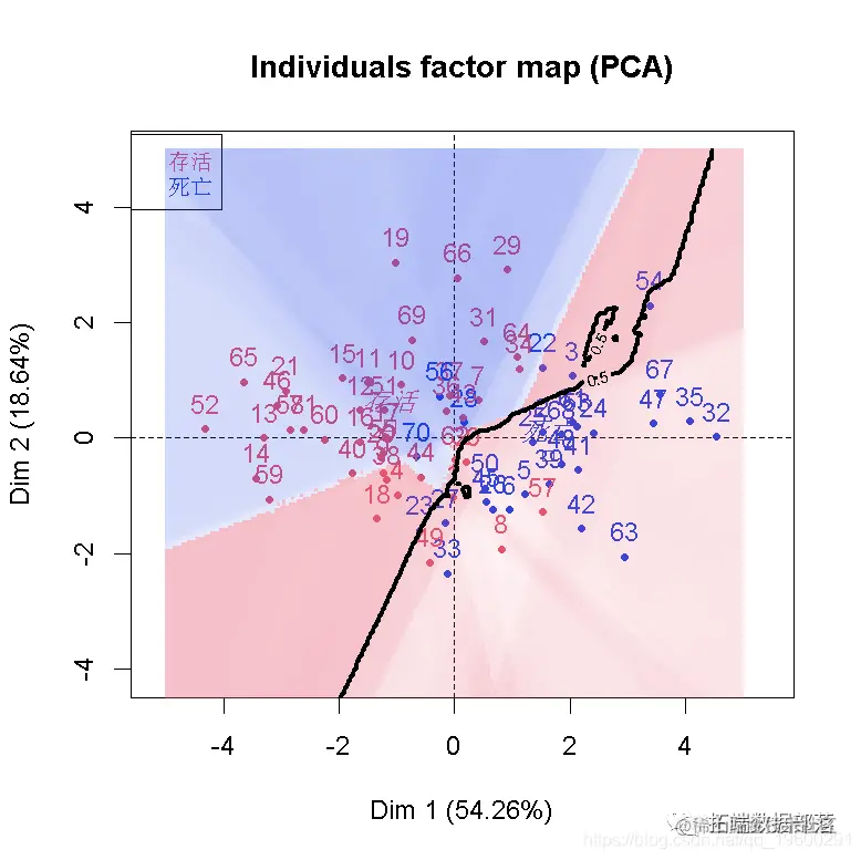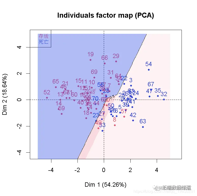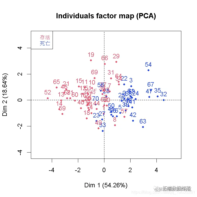 由于我们有7个解释变量和我们的因变量(生存或死亡),我们可以去做一个PCA。