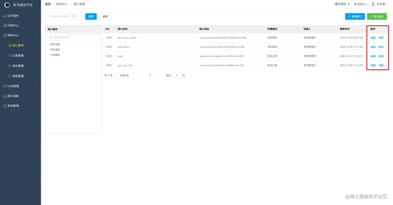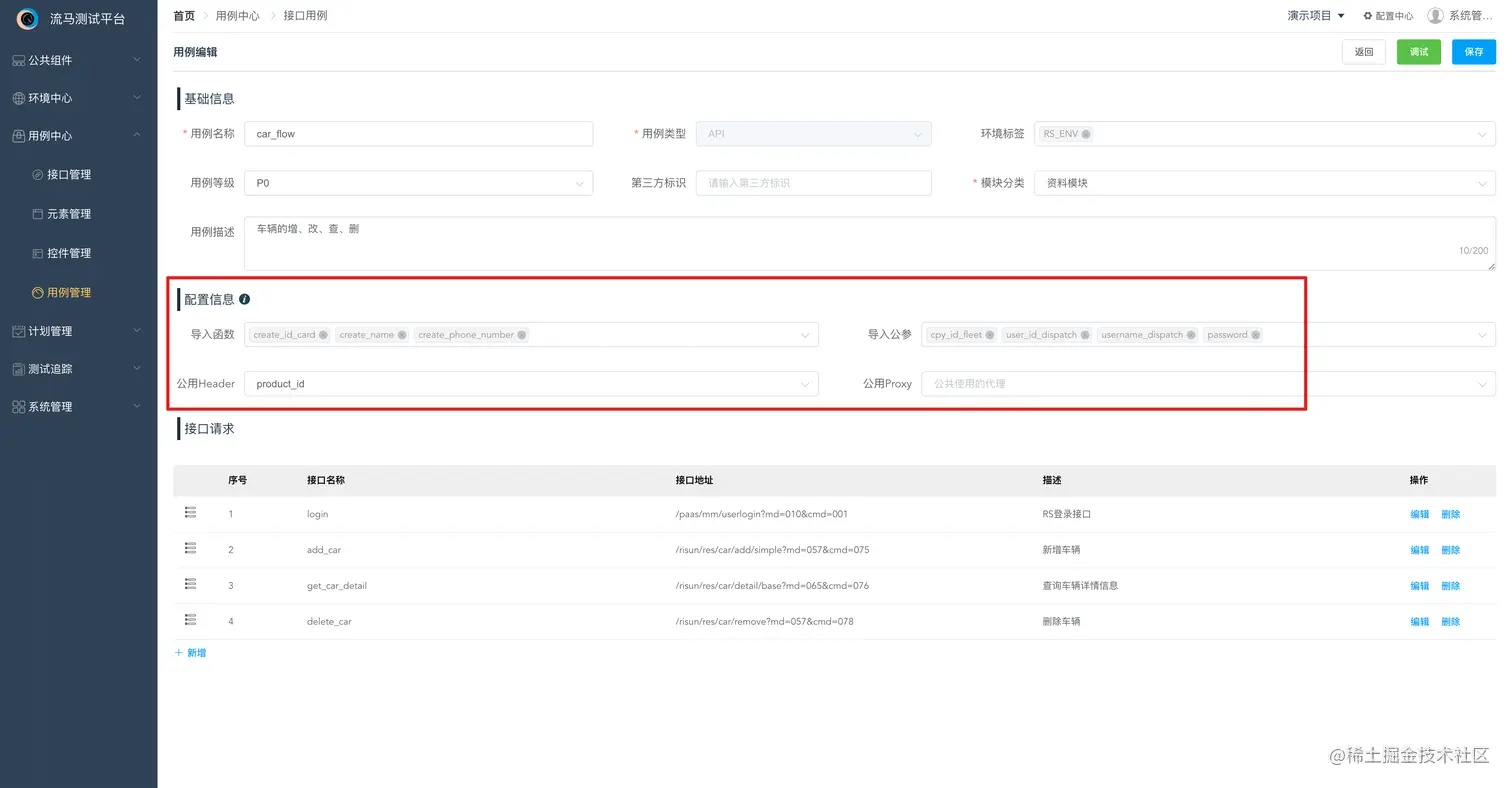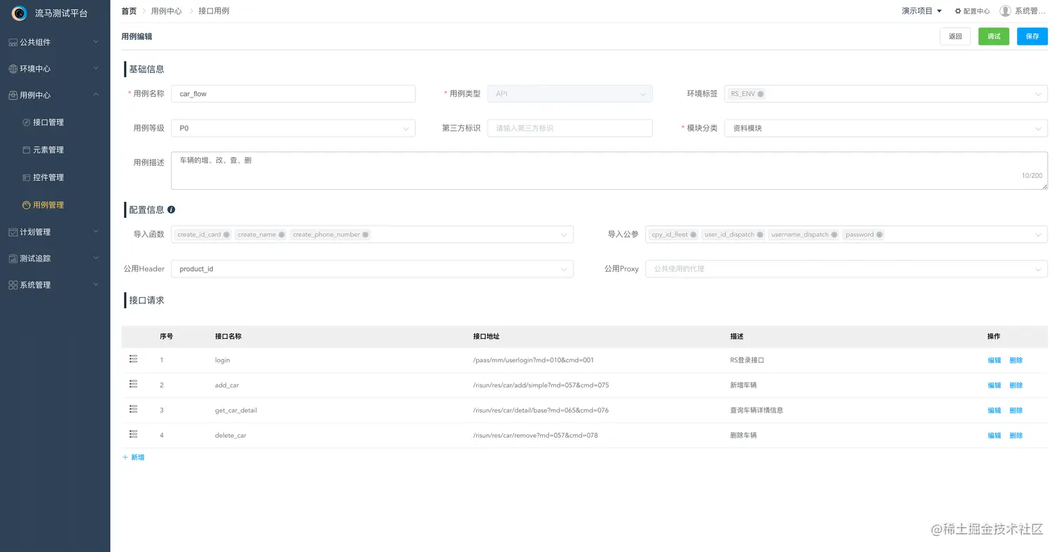另外一个巧妙的地方我觉得没有那么多套路,基本上上手一遍就能摸索出规律,例如前面提到的:一条用例包含多个接口,相应的就能想到计划包含集合、集合包含用例、用例包含接口或元素对象。