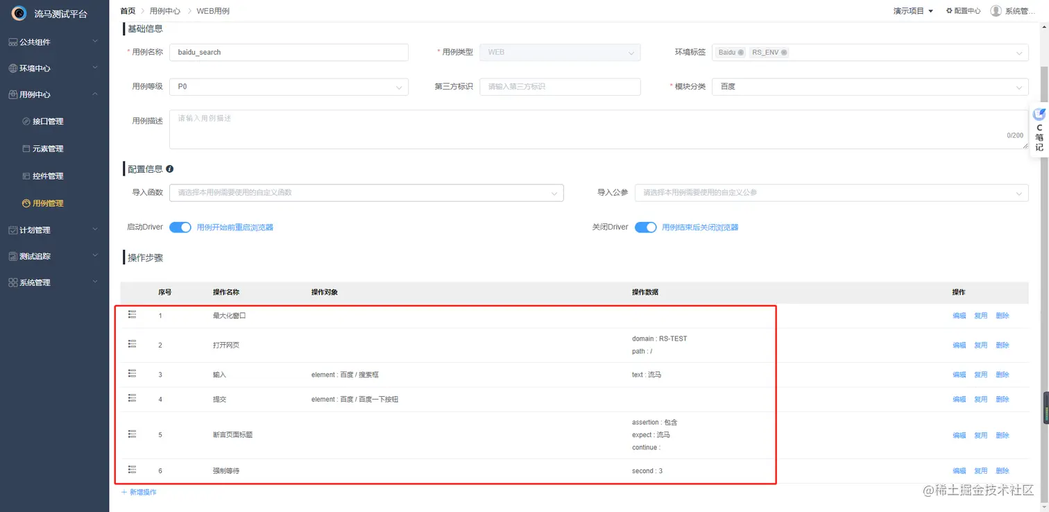 - 用例可以类比成接口用例,接口用例由一个个接口组合而成,而UI用例由一个个元素及元素操作组合而成。