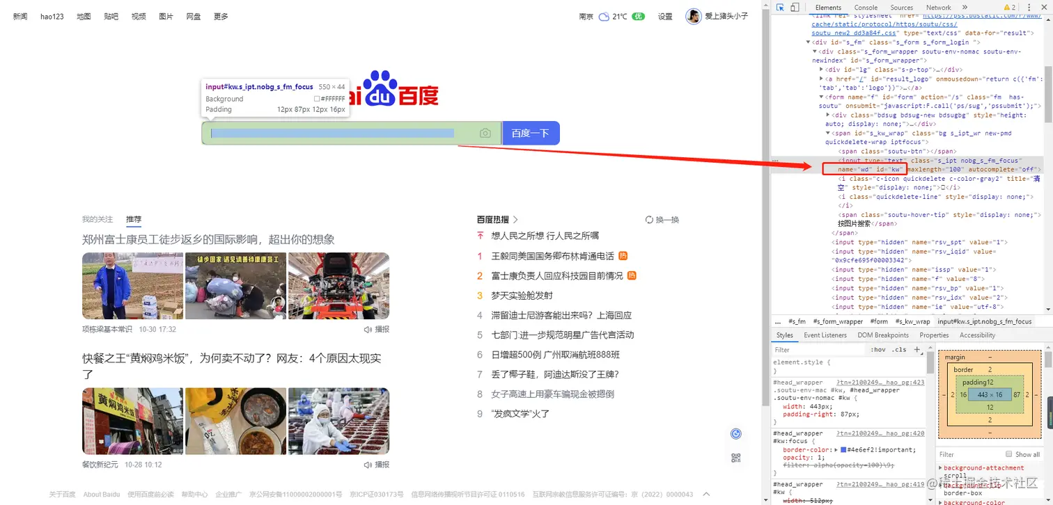 表达式直接填写元素属性值,比如ID定位,搜索框的ID属性值是kw