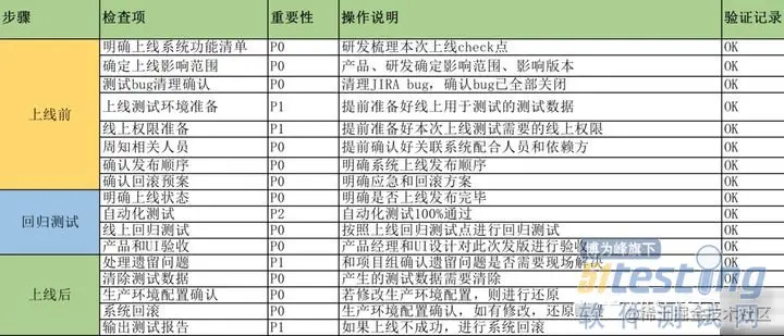 「当测试完毕,达到上线标准之后,我们需要准备一份 CheckList,在上线当天使用」。