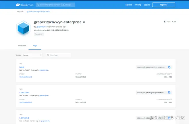 Wyn在DockerHub上发布了BI系统的镜像,大家可以根据自己的需要拉取对应的版本进行部署。镜像地址:hub.docker.com/r/grapecity…